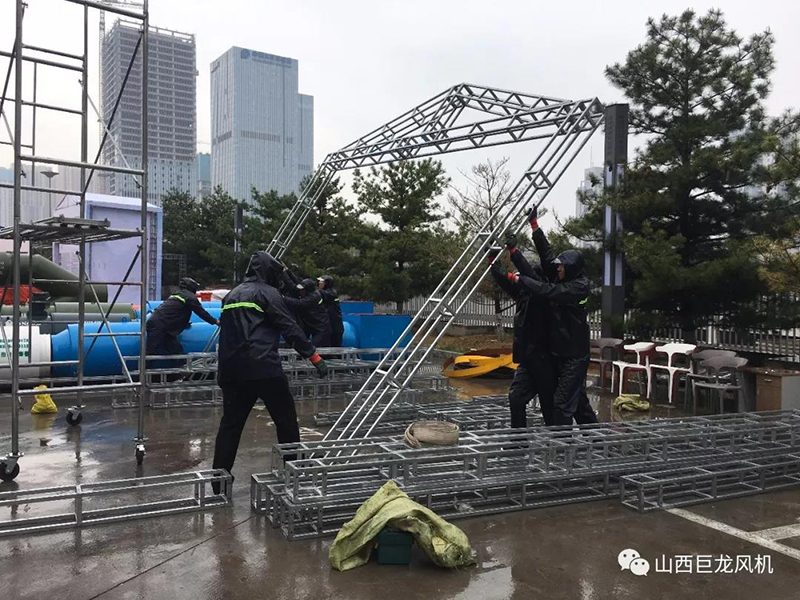常言道:貴人出門遇風(fēng)雨,黃金雨露灑人間。在抵達(dá)太原展會區(qū),天空雨水綿綿,我公司參展的將士們冒雨布展,雖然雨水淋濕了衣衫,但絲毫沒有影響到大家爭分奪秒搭建展架的干勁,心里只有一個信念,那就是:必須全力以赴確保參展圓滿成功!