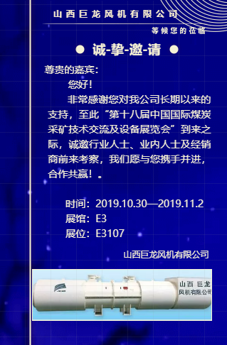 【山西巨龍風(fēng)機(jī)有限公司】誠(chéng)邀您蒞臨北京”第十八屆中國(guó)國(guó)際煤炭采礦技術(shù)交流及設(shè)備展覽會(huì)”參觀指導(dǎo)!
